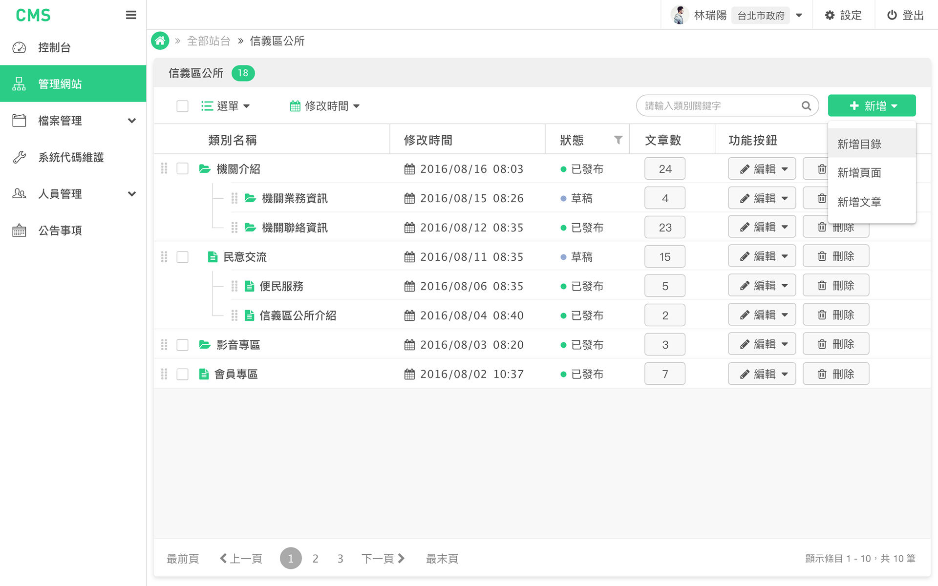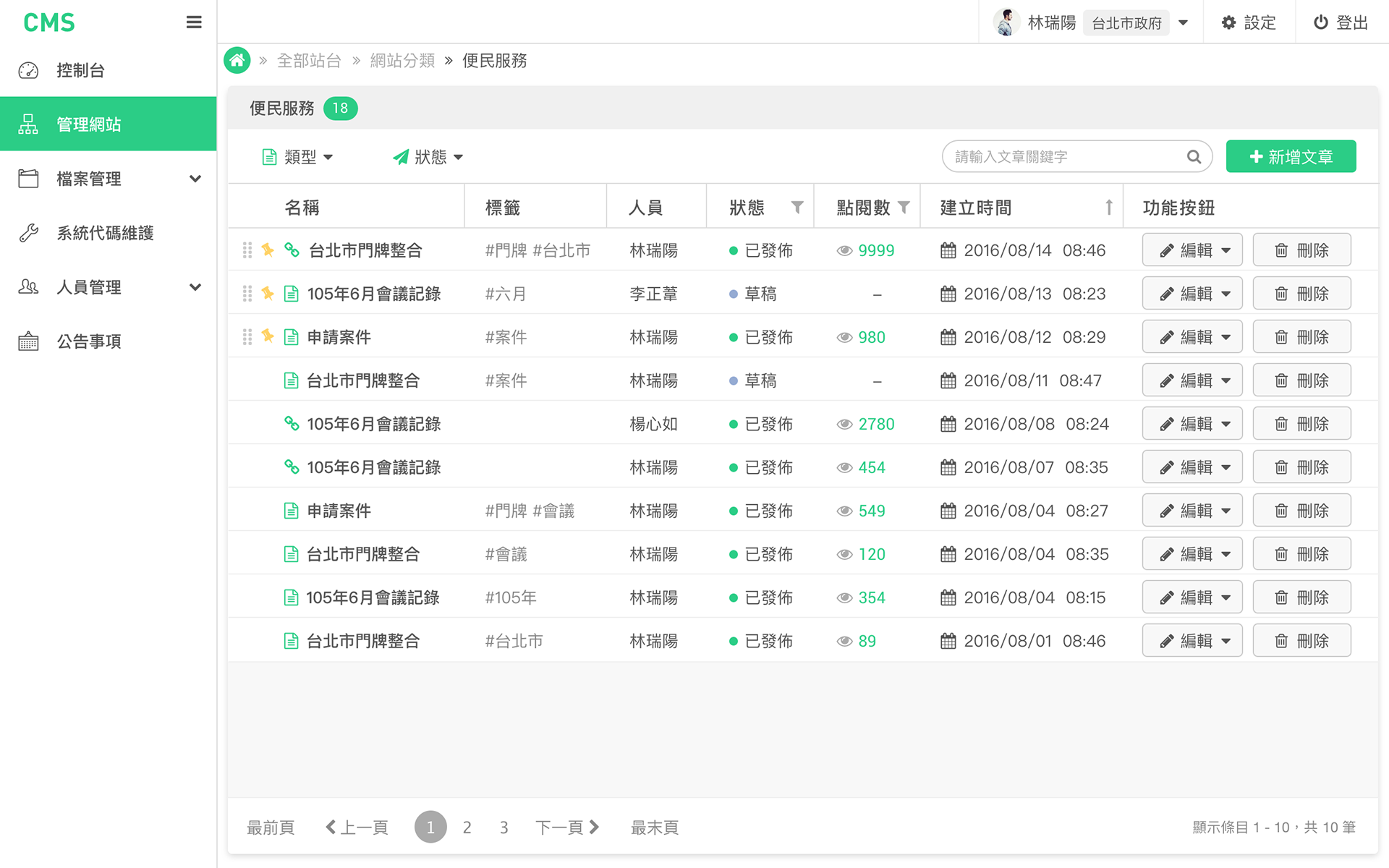 由叡揚資訊承接政府的案子,為政府單位設計 CMS 的軟體。在設計這款 CMS 軟體時,我們的核心理念是提升政府單位的工作效率,確保資訊管理的便利性與安全性。考量到政府機構的使用者可能來自不同背景,我們注重直覺化操作與易用性,確保使用者無需額外教育訓練即可順利上手。